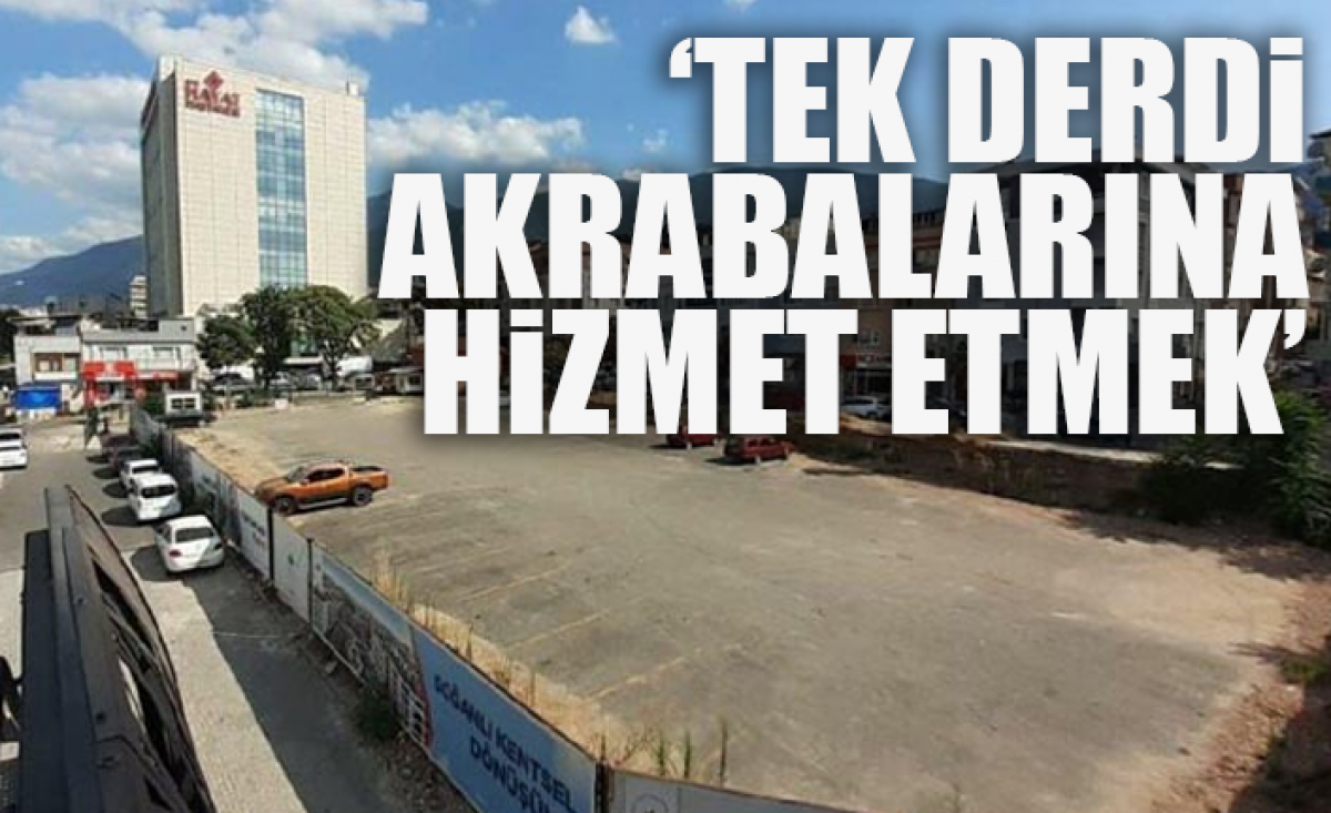 İYİ Parti Osmangazi ilçe Başkanı Mehmet Hasanoğlu, ilçenin en kıymetli arsasına katlı otopark yapılıp ‘yandaşa' tahsis edilmek istendiğini söyledi. AKP’li Belediye Başkanı Mustafa Dündar'ın Osmangazililere verdiği sözü tutmadığını vurgulayan Hasanoğlu, “2012'de depreme dayanıksız diyerek, yenilemek üzere yıktığı Kültür Merkezi'nin arsasına katlı otopark yapıp ‘yandaşa' tahsis etmek isteyen Sn. Dündar'ı şiddetle protesto ediyoruz” dedi.
