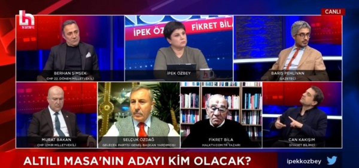 Gelecek Partisi Genel Başkanı Ahmet Davutoğlu, 6'lı masanın belirleyeceği 'kukla adayın' kendilerinin sözünü dinlememesi durumunda bir kriz doğuracağını söylemişti. HALK TV'DEN DAVUTOĞLU'NA: "OYUN KADAR KONUŞ" CHP yandaşı gazeteciler, Davutoğlu'nun söylemleri sonrası Gelecek Partisi'nin oy oranını hedef alarak, "Yüzde 1'lik bir partinin genel başkanı gibi konuşmalı. Seçime girip nasıl bir sonuç alacağını bilmiyoruz." ifadelerini kullanmışlardı. KILIÇDAROĞLU'NDAN CHP YANDAŞI MEDYAYA 'DAVUTOĞLU' AYARI: "TEZGAH KURULUYOR" CHP Genel Başkanı Kemal Kılıçdaroğlu, katıldığı canlı yayında, CHP yandaşı medyaya ayar vererek, "Masayı dağıtmak için bir tezgah kuruluyor, biz bunların tamamının farkındayız." dedi. DAVUTOĞLU'NA ARKA ÇIKTI: "E DOĞRU, YANLIŞ MI?" Kılıçdaroğlu, Davutoğlu'nun 'kriz' çıkışına da destek verip, "E doğru, yanlış mı? Kriz çıkar." ifadelerini kullandı. HALK TV'DE 6'LI MASAYA TEPKİ: "ERDOĞAN OYLARINI ARTIRIYOR, BU DOĞRU BİR YAKLAŞIM DEĞİL" Siyaset Bilimci Can Kakışım, Başkan Recep Tayyip Erdoğan'ın oylarını istikrarlı şekilde artırdığını vurgulayarak 6'lı masayı sert sözlerle hedef aldı. Kakışım açıklamasında, "Seçime gidilirken Erdoğan'ın oyları istikrarlı şekilde artıyor. Bundan bir sene öncesinde baktığımızda Erdoğan'ın seçim kazanma şansı çok daha düşüktü. Eğer bizim dediklerimiz dikkate alınmazsa kriz çıkabilir. En son bu lafı edecek kişi olmanıza lazım. Davutoğlu söylemlerinde yumuşamaya giderken kılıçdaroğlu destek veriyor. Bu doğru bir yaklaşım değil. Biz bu seçimi kazanırsak bu ülkeyi yönetibiliriz hissini seçmene vermemiz gerekli." ifadelerini kullandı. HALK TV'DE YÜZLER DÜŞTÜ Bu sözler sırasında yayına bağlanan diğer konukların yüz ifadelerinin düşmesi dikkatlerden kaçmadı.