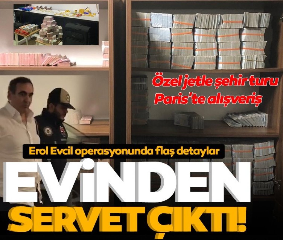 Özel jetle gün içinde 5 il gezen Evcil'in, eşini de Paris'e alışverişe gönderdiği, et yemek için Hatay'dan İstanbul'a gidip geldiği öğrenildi.