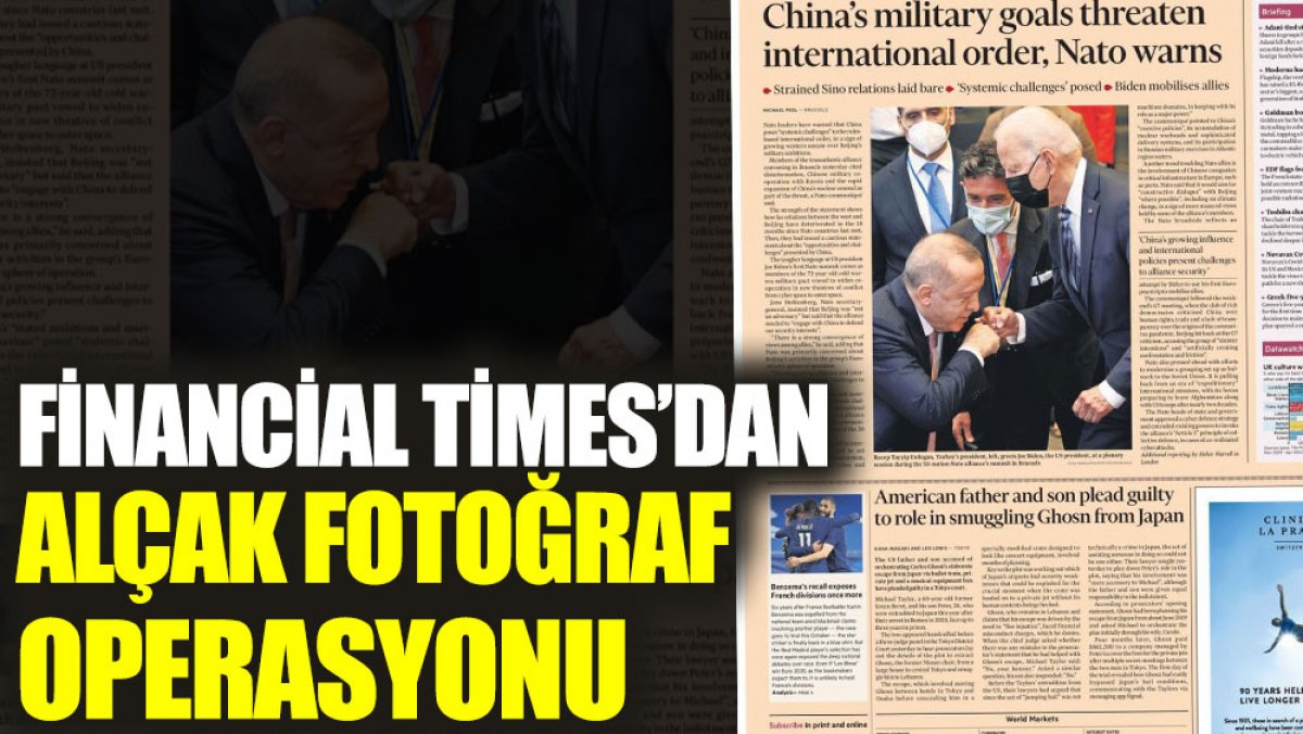 Financial Times, Erdoğan'ın yanına gelen Biden için ayağa kalkarken elini öpüyormuş gibi görüntülenen fotoğrafı kullandı.