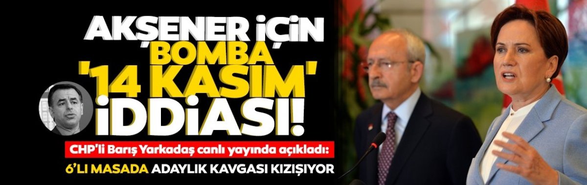 2023 seçimleri yaklaşırken 6lı masada Cumhurbaşkanlığı adaylığı kavgası daha da kızışıyor. CHP lideri Kemal Kılıçdaroğlu adaylık konusunda ısrar ederken, İYİ Parti lideri Akşenerin ise Kılıçdaroğlunun adaylığına sıcak bakmadığı biliniyor. CHPli eski vekil Barış Yarkadaş katıldığı bir canlı yayında ise Akşener için bomba niteliğinde 14 Kasım iddiasında bulundu