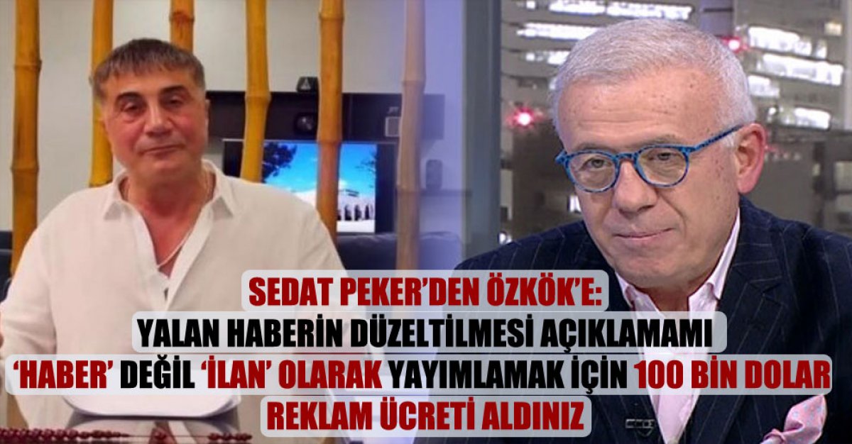 Sedat Peker'den Özkök'e: Yalan haberin düzeltilmesi açıklamamı 'haber' değil 'ilan' olarak yayımlamak için 100 bin dolar reklam ücreti aldınız